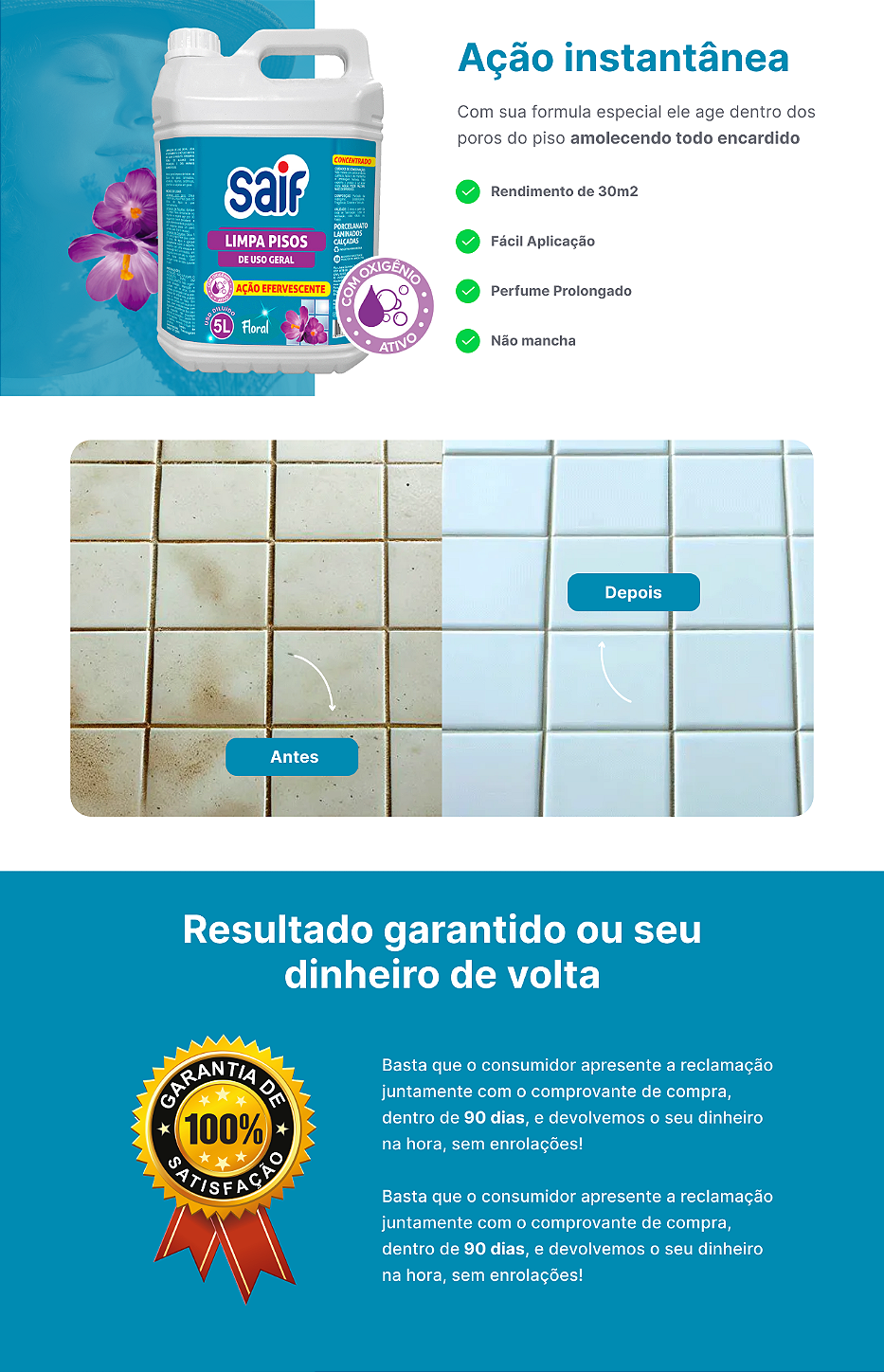 Limpa Pisos Saif é um Limpador de uso geral, indicado para a limpeza de pisos, laminados, azulejos rejuntes, cerâmicas, granitos e calçadas em geral.